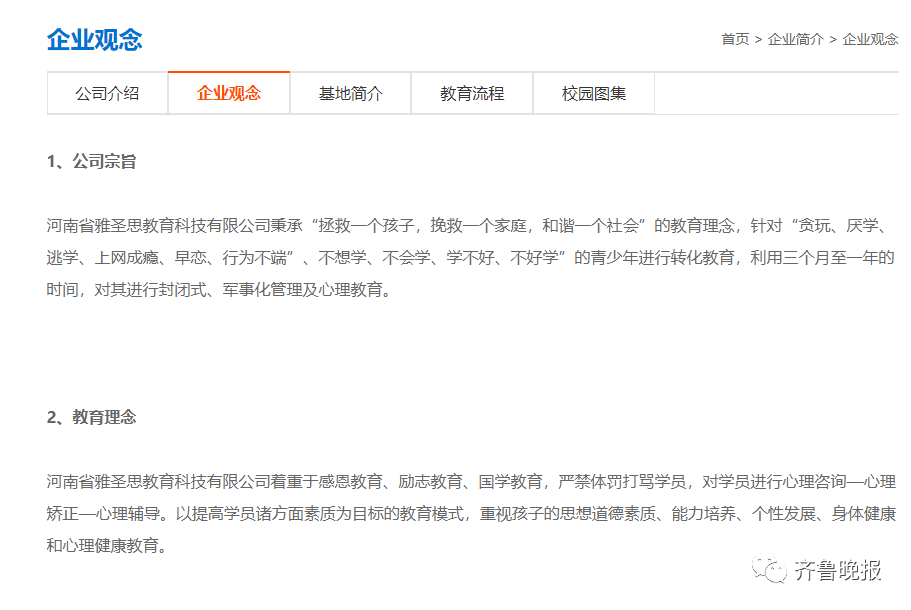 据雅圣思官网介绍,该公司针对“贪玩、厌学、逃学、上网成癮、早恋、行为不端、不想学、不会学、学不好、不好学”的青少年进行转化教育,利用三个月至一年的时间,对其进行封闭式、军事化管理及心理教育。