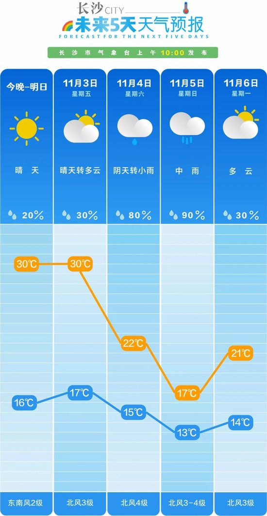 30℃→22℃→17℃!长沙气温有变化,注意加衣!