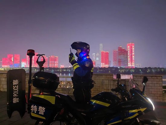 这是第四个中国人民警察节。为弘扬新时代人民警察精神,进一步凝聚崇警尚警爱警的社会共识,长沙市在湘江两岸开展庆祝中国人民警察灯光秀活动,145栋大型建筑外墙上,“热烈庆祝中国人民警察节”“对党忠诚、服务人民、执法公正、纪律严明”等庆祝标语特别醒目,在万家灯火的交相辉映下,勾勒出一幅平安湖南、平安长沙的美丽画卷。