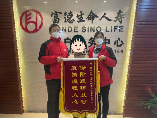 收到理赔款后C先生致电感谢:“感谢你们,这么冷的寒冬给我带来了理赔的温暖”。随后C先生委托家人向富德生命人寿长沙中支赠送一面“保险理赔及时,真情温暖人心”的锦旗,并代表全家向我司表达感激之情。