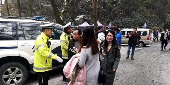 中心景区道路积冰,S333(X037)南马线等山区公路积冰,交警蜀黍设有多道关卡,实行交通管制,来岳车辆需绕行。