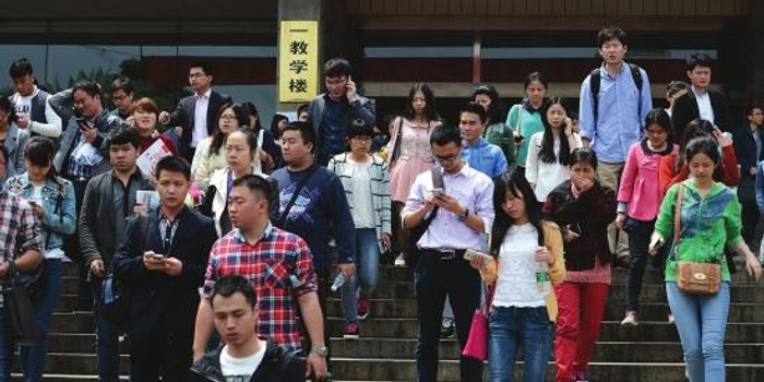 4月25日,中南林业科技大学,当天上午经过第一轮考试后,考生陆续离场。2015年度湖南省公务员录用考试开考。图/记者陈勇