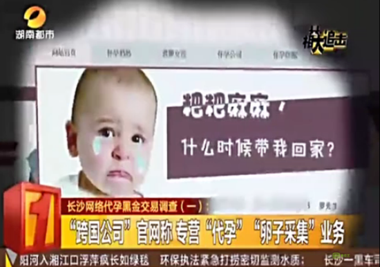 据湖南都市频道报道 不管患有何种不孕不育的症状,只要缴纳85万元费用就能成功地生下男孩,这样的广告词就出现在长沙一家怀孕公司的网站上,他们声称自己是一家跨过公司的长沙分公司,有偿收购女性卵细胞,并可以提供代孕服务,并可以制定性别生育。