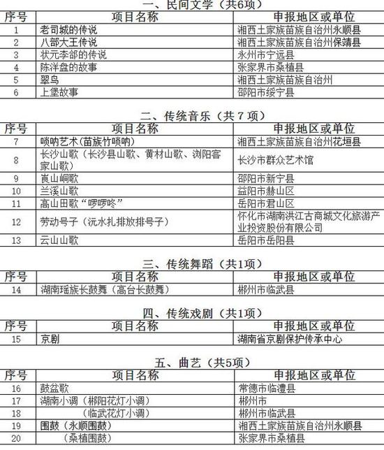 关注湖南省文化厅关于公示第四批省级非物质文化遗产代表性项目名录推荐项目名单的公告