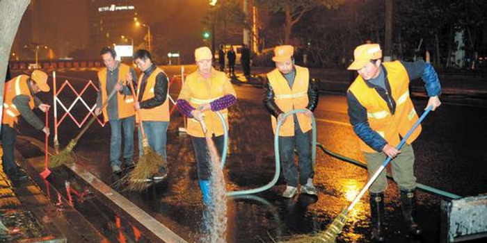 清清爽爽迎春节:现场直击长沙城市夜间保洁