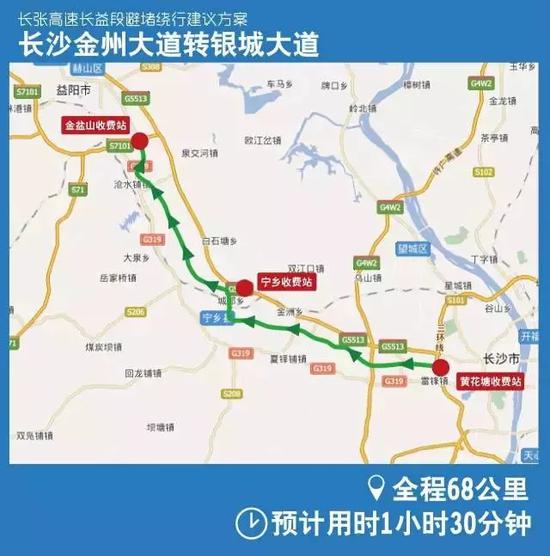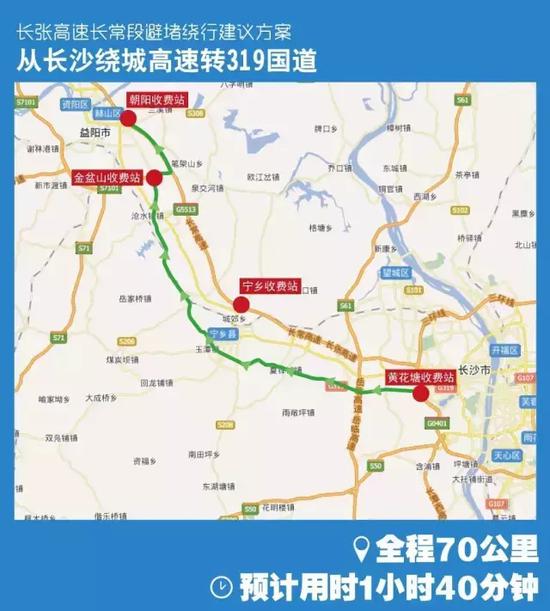 绕行线路一:长沙绕城高速转319国道
