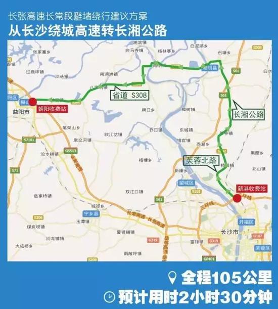 绕行线路三:长湘公路转长沙绕城高速