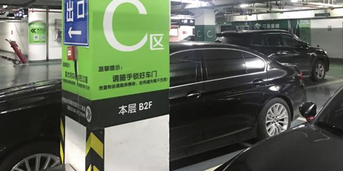 悦方IDMALL停车场通过颜色和字母分区,方便找车。图/记者 丁蓉