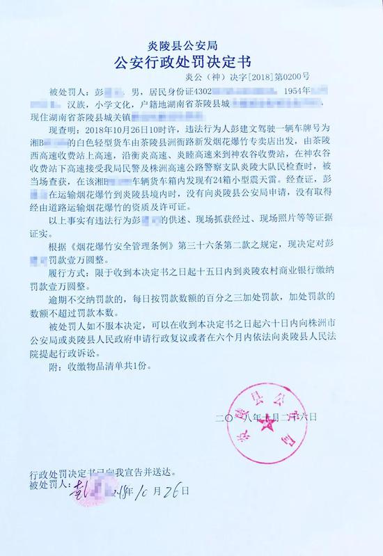 炎陵大队民警对驾驶人彭某运输危险物品未经批准的违法行为罚款200元,并移交炎陵县公安局作进一步处理。