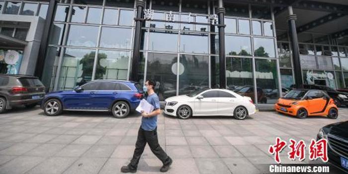 图为一人从奔驰4S店经过。 杨华峰 摄