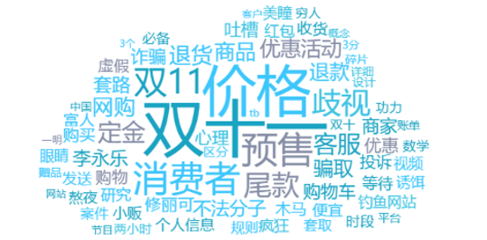 此外,从舆情数据中的几处集中“槽点”来看,电商平台是“双11”游戏规则的单方面制定者,消费者只能被动接受规则。诸如“退款申请次日零点开通”“所有商品不接受七日无理由退货”等条款,是排除或限制消费权利、减轻或规避经营者应尽法律责任的伎俩。