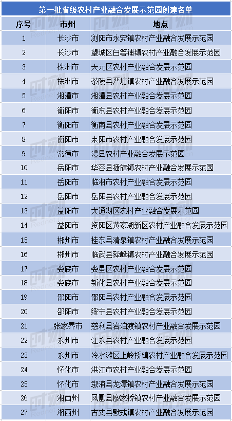 此次共有27个县(市、区)的示范园拟纳入湖南省第一批省级农村产业融合发展示范园创建名单。