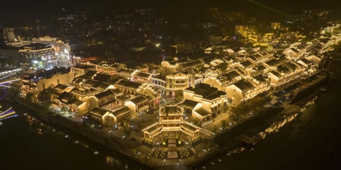 夜幕低垂,灯火辉煌。烟雨洪江街区幡旗林立,60 多个非遗文创和农特产品展台摆放有序,各色店铺沿街开放,舞龙、川剧变脸等多个沉浸式演出映入眼帘。近年来,洪江古商城不断丰富文旅业态,围绕电视剧《一代洪商》的洪江元素,创新推出 “ 桐油花开 ” 沉浸式夜游演艺,打造商道主题 “ 夜经济 ” 产业链条,集建筑文化、民俗文化、美食文化、红色文化等多元包容的综合文化旅游景区。今年 7 月,洪江古商城还获批了国家级夜间文化和旅游消费集聚区。