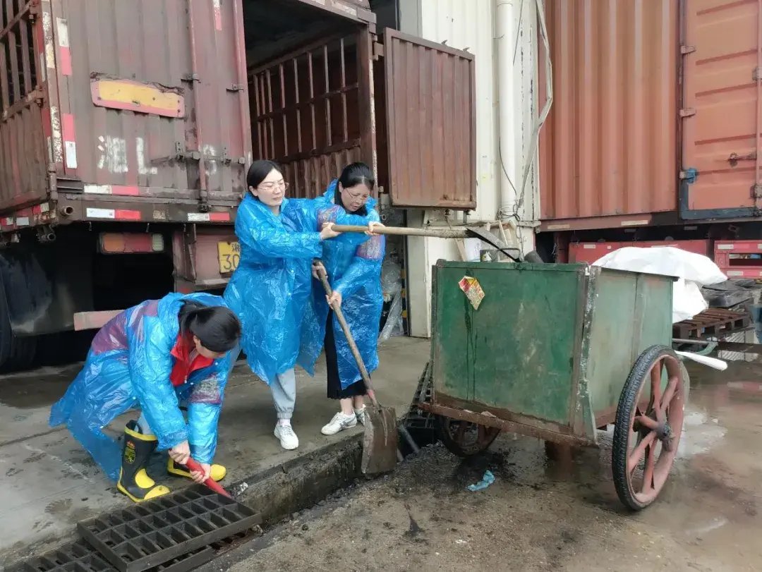 在开福区,一支巾帼雷锋志愿者组成的党群突击队——“卡姐之家”在长沙传化公路港物流园区内加强巡检,排查强降雨可能引发的园区积涝、地质灾害等,收集与解决园区客户因恶劣天气所遇问题。