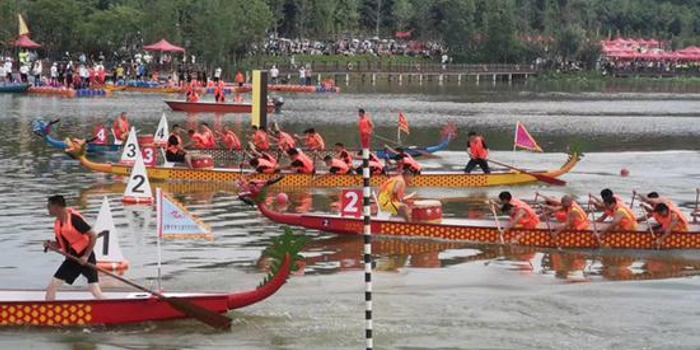 岳阳汨罗举办“我们的节日·端午”屈子文化园游园活动暨龙舟表演赛。