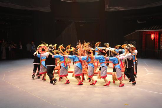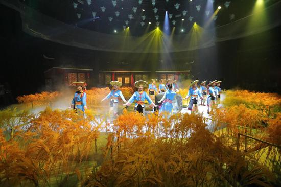 《花瑶喜宴》共分“暮童花瑶”“清晨晒秋”“半夜会乖”“冬喜恋歌”四大篇章演绎,全剧一气呵成,用花瑶真实的生活场景淬炼出最“烟火”的美学构思,以浪漫的民俗风情沉淀出最“圣洁而疯狂”的婚宴仪式,用花瑶婚俗与花瑶山歌两大在地性的文化符号,谱出独属于花瑶的情感表达。