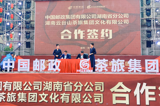 活动现场,云台山茶旅集团与中国邮政集团有限公司举行签约仪式,联合推出集门票、邮票、明信片为一体发行云台山景区旅游套票。游客通过套票可一票畅游云台山景区湘中首个飞行基地、首条玻璃栈道、玻璃吊桥、索道缆车等多个游玩项目以及民俗文化村、国际马戏、梅山篝火晚会、游乐场等多个旅游形式,并可获赠一份具有纪念意义的安化黑茶十两茶。同时,依托邮政集团畅通的网络体系进一步助推安化乡村旅游产业发展,巩固安化产业扶贫成果,促进乡村振兴。