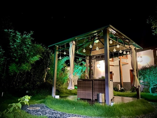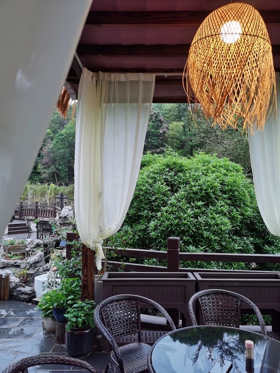 七个房间各具特色,带庭院或露台、踏踏米房内赏180度森林全景以及带浴缸的LOFT套房等,室内软装采用天然藤编与木头的融合,加上朴素的麻布电动窗帘,柔和温暖,让您的旅途变得轻松愉悦。移步户外两颗巍峨挺拔的梧桐树,静待凤凰来。四十九米长的月季花墙,待百花齐放,捧一杯清茶,与花同乐,怡然自得。大草坪的篝火区域,到了夜晚,拉上幕布来一场露天电影,与三两好友围炉煮茶,谈笑风生。临塘的荷花盛开,乌篷船里有鸿儒......