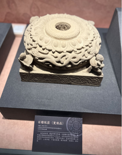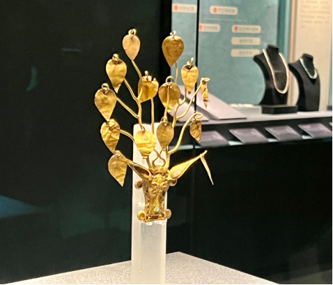 呼伦贝尔的嘎仙洞遗址出土的石镞、骨锥等,见证了拓跋鲜卑早期的生活遗迹;内蒙古博物院藏的鹿角金步摇冠精美华丽,鹿头面部镶嵌有珠饰,鹿角支叉上所挂的桃形金叶均可摇动,同时也象征着草原民族对于鹿的崇拜;一件件釉陶马、釉陶甲骑具装俑、釉陶骑马鸡冠帽俑,展示了拓跋鲜卑强大的骑兵力量;从大同出土的彩绘陶女舞俑到洛阳出土的彩绘陶伎乐俑,体现着北魏在汉化改革前后的服饰变化、音乐舞蹈和社会生活等;具有希腊罗马雕塑艺术风格的花卉人物文金盘,玻璃小钵那迷人的“北魏蓝”,无一不彰显着当时丝绸之路的繁荣和东西方文化的交汇。长沙博物馆执行策展人孙田介绍,拓跋鲜卑还创造了丰富灿烂的文化,云冈石窟、龙门石窟的开凿年代都是在北魏时期,《水经注》的作者郦道元、《齐民要术》的作者贾思勰都是北魏人,《洛阳伽蓝记》里是借佛寺来写孝文帝迁都洛阳至北魏分裂为东、西魏之间的历史,我们所熟知的《木兰诗》的故事背景也被很多专家推测为北魏,他们所遗留下的这些文化艺术至今仍为世人瞩目。
