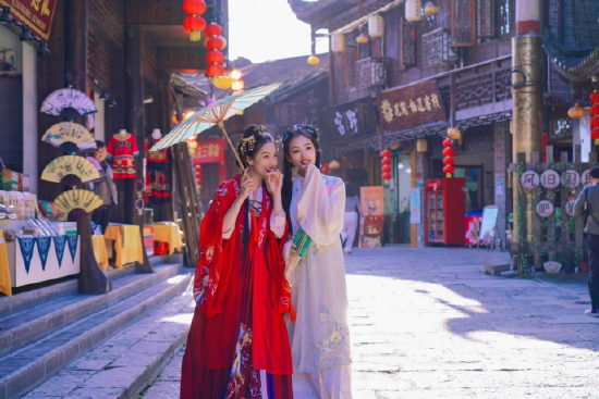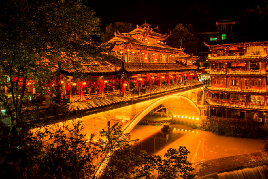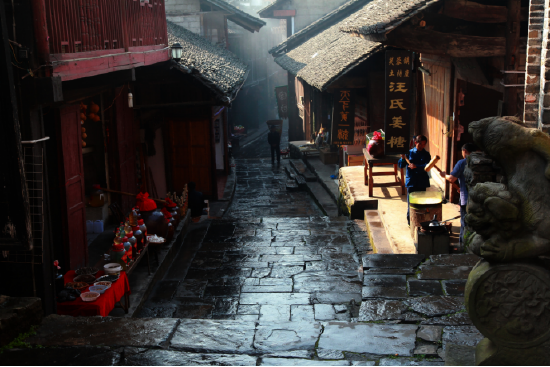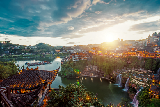 穿瀑布、寻土司遗迹、看吊脚楼群