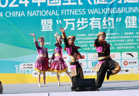 在大赛正式开始前,组委会精心挑选的暖场节目率先开场,节目既有活力四射的《骏马科学健走方阵展示》,也有令人目不暇接的《舞龙》,更有惊喜不断,饱含民族特色的《张家界千古情》演出,让现场氛围不断高涨。