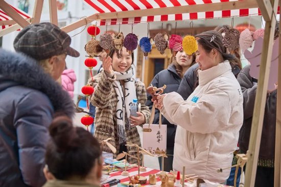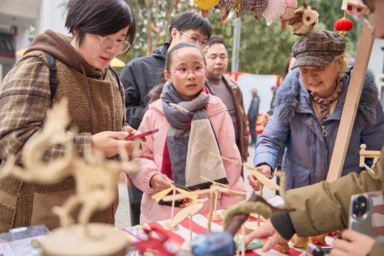 “冬日趣玩”环节则更加注重游客的参与性和互动性。剪纸作为流传广泛的民间艺术,以其独特的视觉形象及丰富的历史文化涵义装点着我们的传统节日。冬至当天,在长沙剪纸区级代表性传承人周斌老师的带领下,游客们剪出一个个饱含美好寓意的“福”字窗花,现场的糖画摊也勾起了大家甜蜜温暖的童年记忆,不少游客流连在摊前,学着画出“冬至”字样的糖画。还有长沙谜语、传统和香制作技艺等免费传习活动,来自五湖四海的游客朋友们在一片欢声笑语中亲手体验非遗制作的乐趣。