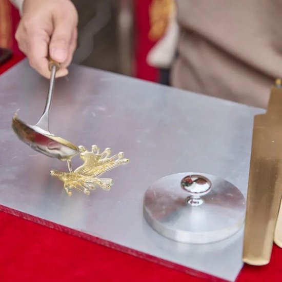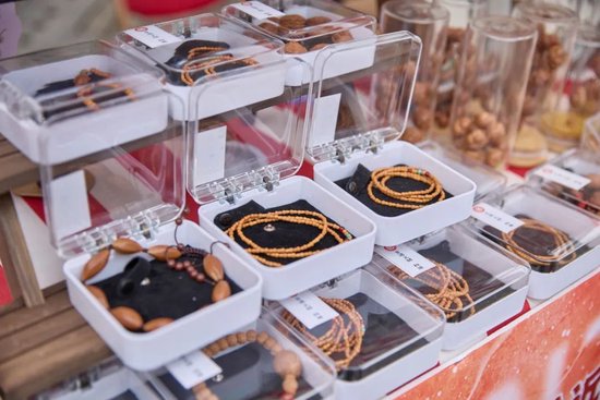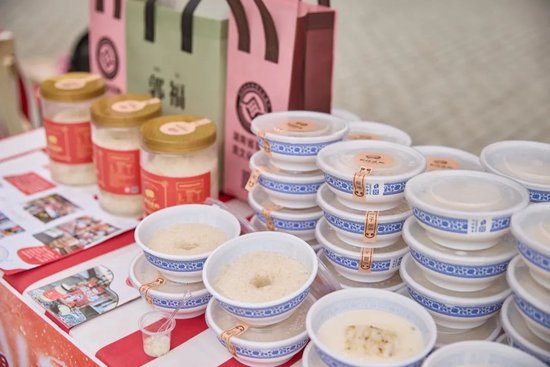 在“冬日暖集”环节,非遗市集琳琅满目,展示了众多具有湖湘特色的非遗产品。冬至时节湖湘地区有饮冬至酒或酿酒的习俗,人们常在冬至饮酒驱寒保暖、庆祝团圆、共度佳节。集市现场,郭福娭毑小钵子甜酒清香甘甜,老少皆宜,麻姑井糯米黄酒酿造技艺的所出品的佳酿也成为游客首选伴手礼。除了饮酒,由糯米、桂圆肉、红枣、莲子等多种材料蒸制而成八宝果饭也是湖湘居民冬至餐桌必备,集市当天火宫殿八大传统小吃制作技艺的八宝果饭,以其软糯香甜的口感吸引了不少游客驻足品尝。此外,长沙棕叶编、棕垫制作技艺、核雕制作技艺、长沙皮影戏等非遗技艺项目也纷纷亮相,为非遗传承人提供了展示与销售的平台,让游客在购物的同时,也能感受到传统文化的魅力。