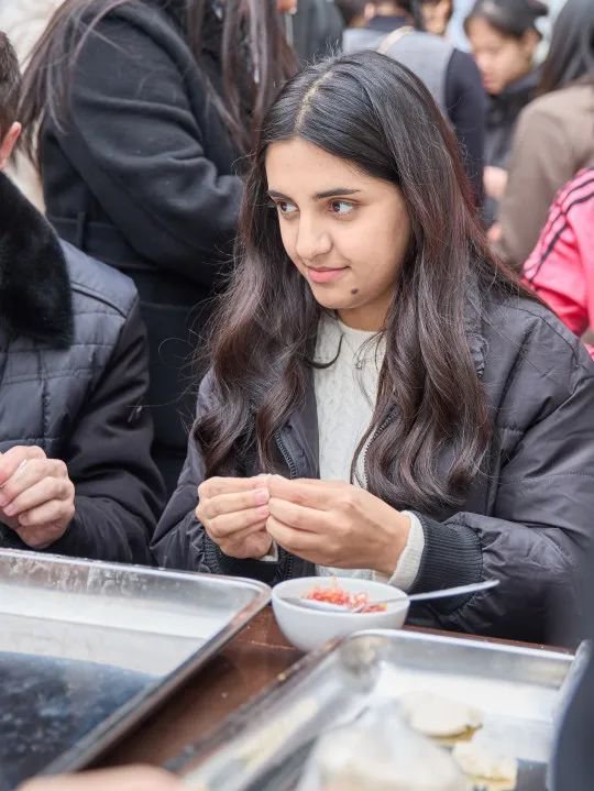 擀面皮捏褶皱,留学生们对饺子这一中国传统美食的制作方式产生了浓厚的兴趣。蒸汽翻腾间,大家亲手制作的饺子新鲜出炉,“我知道饺子在中国传统文化中意味着团圆,我很喜欢大家围坐在一起包饺子的氛围,这让我感觉很温馨。”一位留学生品尝着饺子兴奋的说到。随后,各位留学生来到长沙非遗馆二楼学习体验长沙面塑,大家聚精会神地模仿着老师的步骤和手法,在制作中加上自己的小巧思,捏出形态各异、憨态可掬的熊猫面塑。在充满传统特色的体验活动中,留学生们率先感受了“冬至大如年”的浓厚氛围,以他们的亲身体会发出邀请:欢迎全世界的朋友今年春节来长沙过年遇见更美好的中国,体验非一般的长沙!