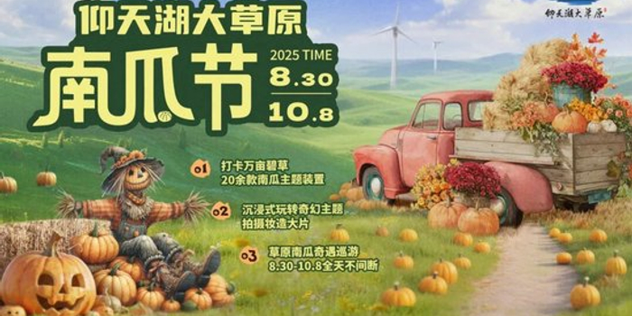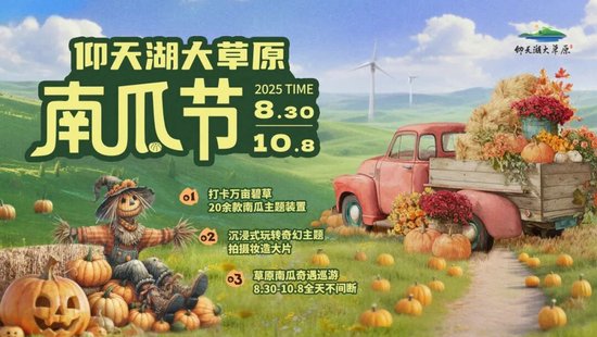 8月30日—10月8日南瓜节期间,每日上演丰富多彩的巡游互动,仰天湖宝宝、南瓜精灵会穿梭于草原之间,与您亲密距离互动,唤起萌趣的童年记忆,想要偶遇的友友们,记得认准节目单上的时间哦