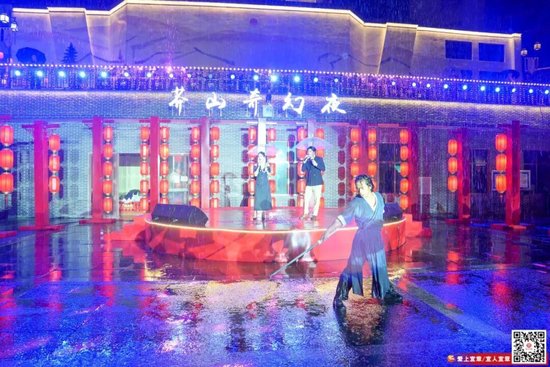当晚虽然降雨不断,但是莽山“奇幻夜”依然如期登场,演员通过武术表演、歌曲演唱等表演形式,为游客献上一场场精彩的演出,游客观看节目的同时,在瑶溪谷夜游、夜购,品尝郴州地道风味。