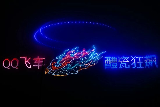 当晚,“千年瓷都 五彩醴陵”恒达群星焰火晚会上,这场跨界联动迎来高光时刻。在璀璨烟火的映衬下,千架无人机腾空而起,在夜空中精准排列,呈现出“QQ飞车醴瓷狂飙”字幕和即将在QQ飞车上线的A车皮肤《瓷彩湘韵》造型。电竞文化符号与醴陵瓷元素巧妙结合,以震撼的视觉效果镌刻在夜空,大家纷纷拿出手机记录这一精彩瞬间。