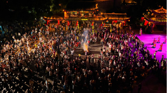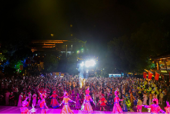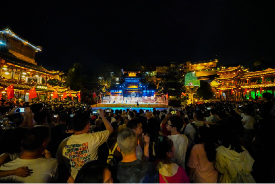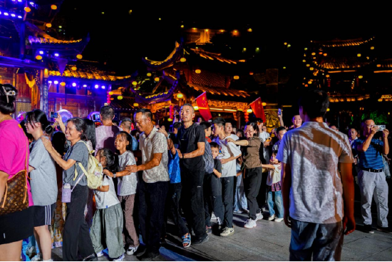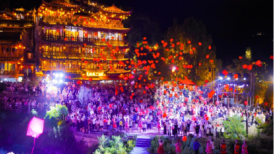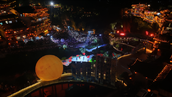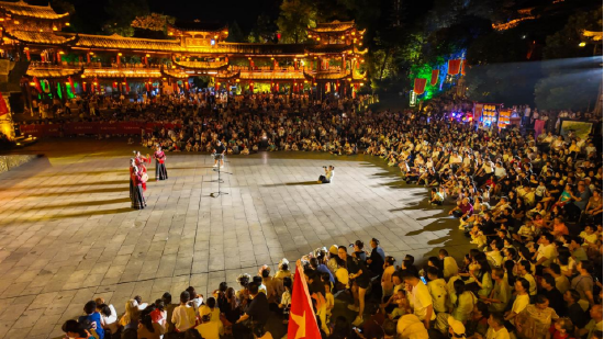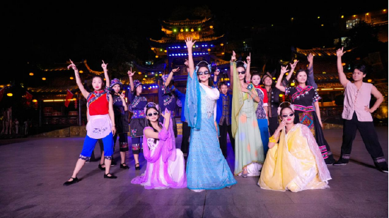 芙蓉镇里一步一景,一眼千年,《花开芙蓉·毕兹卡的狂欢》演艺、快闪、音乐会等全天候轮番炸场。各个点位互动打卡热火朝天,让热闹从白天燃到黑夜!