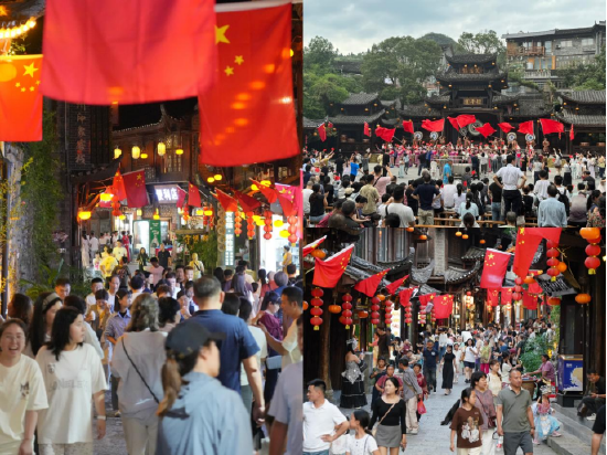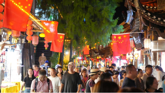 关注国庆假期的芙蓉镇・红石林度假区彻底“红”透了!满镇红旗迎风飘扬,满眼皆是“中国红”!石板长街游人如织,处处涌动“人潮红”!游人欢声笑语不断,满脸绽放“幸福红”!