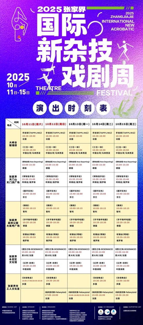 关注10月11日,2025张家界国际新杂技戏剧周启幕。5天时间里,来自13个国家和地区的艺术家与团体将在张家界的奇峰秀水间呈现60余场演出,展开一场跨越国界的艺术对话,呈现一系列精彩纷呈的视觉盛宴。