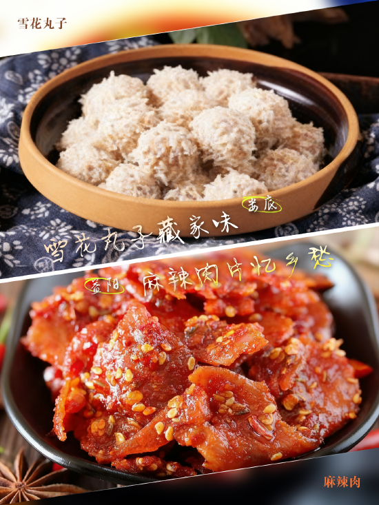 娄底的雪花丸子,是裹着乡愁的“家常味道”。糯米包裹着肉馅蒸得软糯鲜香,一口下去满是湘中人家的扎实温暖。益阳的麻辣肉是刻进记忆的“零食担当”,精选猪肉经秘制工艺制作,咸香带辣、越嚼越香,看球闲聊时吃上一口解馋又暖心。