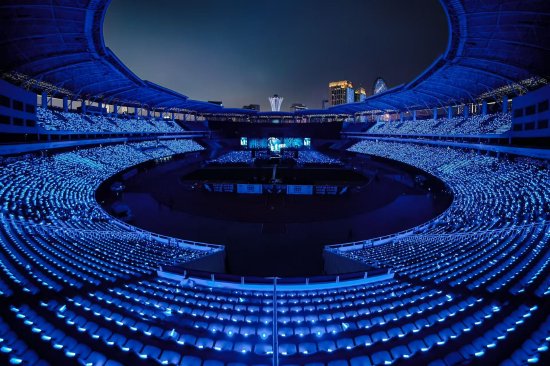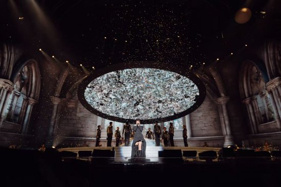 整场演唱会的舞台设计,同样紧扣 “回响” 主题:流动的光影粒子随音乐解构重组,时而让人仿佛被《歌手》时期的复古舞台轮廓环绕,时而让人犹如让湘江夜色的粼粼波光拂面,在光影与旋律之间带领观众穿梭于林忆莲的音乐生涯。而ending曲目《蓝莲花》的蓝色光带更是与观众手中的荧光棒互相辉映,形成一片 “蓝色花海”,完美实现了视觉与音乐的融合,让现场进入沉浸式的音乐空间。