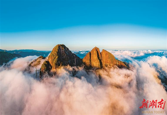 莽山五指峰云海翻涌,化身绝美“天空之境”。韩国游客金敏秀在海拔1600米的悬空栈道,推着轮椅上的七旬父亲,比出大大的“V”字手势——这张照片在韩国社交媒体刷屏。