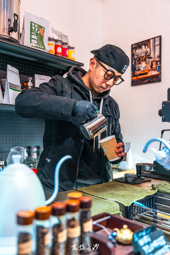 偶然踱进新开的影麓Coffee,主理人沉浸式制作卡美罗咖啡。曾经在传媒行业“24小时ON call”的年轻人,终于选择在望月湖慢下来,和顾客们聊聊豆子的产地和风味。