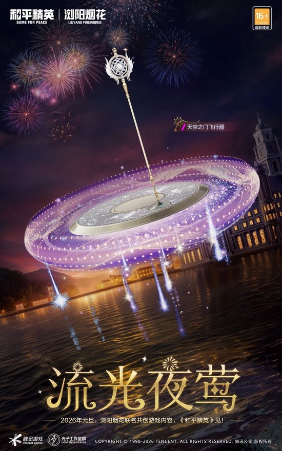 关注天马腾空,璀璨开年!2026年元旦,《和平精英》携手“浏阳烟花”诚邀全体特种兵共燃。在浏阳市委网信办指导下,这场由“游戏+非遗”的联动,把约40亿次传播的现象级烟花IP搬进海岛,用数字黑科技解锁跨年新姿势——亲手造非遗烟花、解锁限定流光套装、和好友线上共赴烟花盛宴,今年元旦,和平精英承包你的所有惊喜!