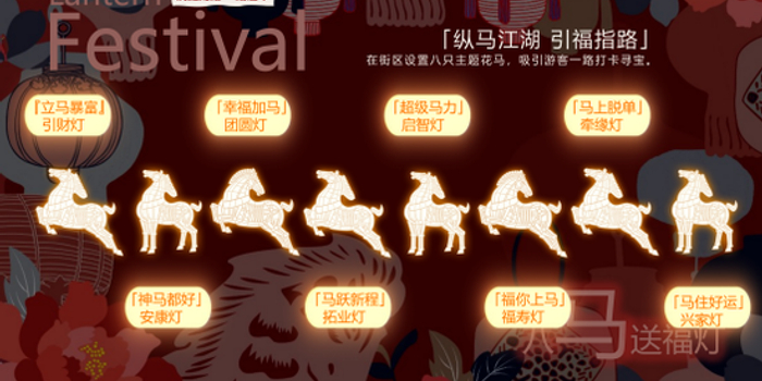 八组主题花马,静候在青石板路的不同角落。它们不只是灯,更是财富、团圆、事业、平安、学业、爱情、健康、兴家八种祝福的化身。