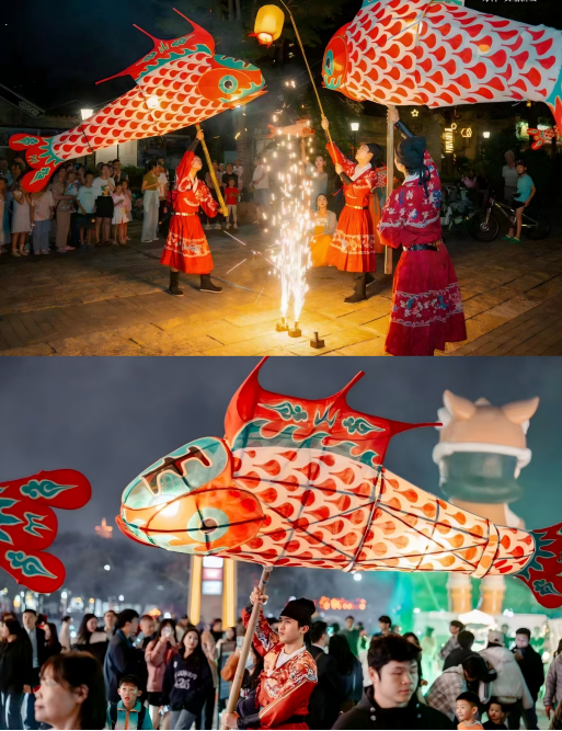 鱼灯巡游:璀璨鱼灯点亮街头巷尾,跟着队伍走,年味跟着有!