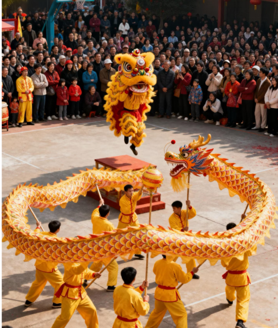 舞龙醒狮:铿锵锣鼓响起,金龙翻腾,醒狮跳跃,瞬间将你拉入新春气氛。