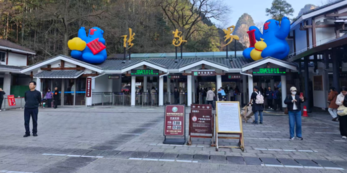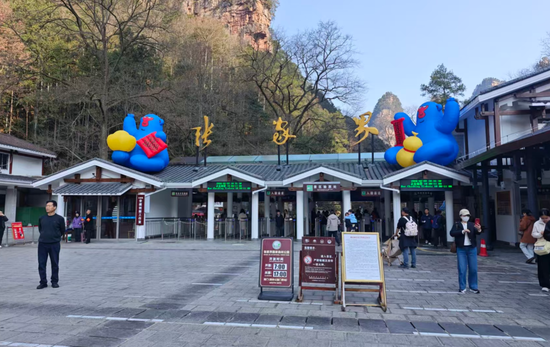 在张家界国家森林公园南门入口处,游客们依次入园,景区工作人员耐心开展文明引导服务,现场入园流程高效顺畅。