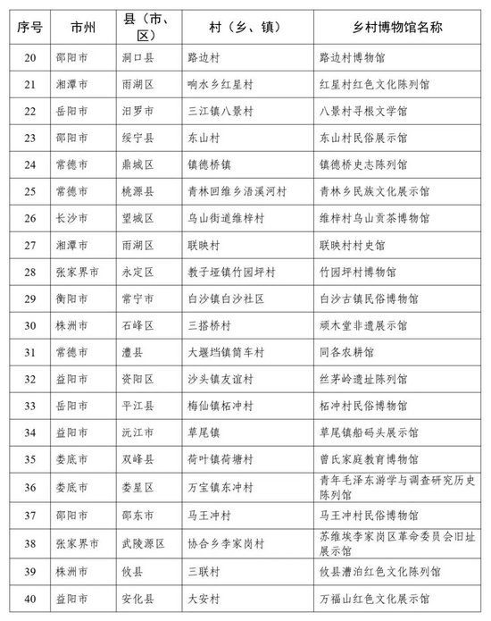 湖南省2025年乡村(类)博物馆名单