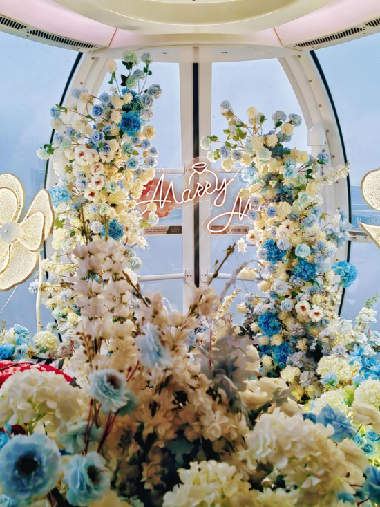 我们把一整个春日花园搬进了 128 米高的 “湘潭眼” 摩天轮里,女神节限定轿厢做了全场景的春日主题布置,还有专属的春日歌单全程循环。