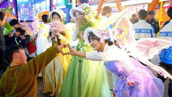 每天准点出发的春日花神巡游队伍,是园区里最吸睛的流动风景线。仙气飘飘的花神身着缀满鲜花的春日华服,会随机向女生送出春日限定的鲜花手作、定制祝福卡片。和花神并肩走在园区里,仿佛一秒穿越进了春日童话。