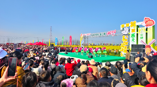 活动现场,人头攒动、歌舞飞扬,民俗表演、田园市集、千人宴等特色活动同步开启,湘鄂赣多地游客慕名而来,在花田间打卡、江堤边骑行、市集里逛吃,尽享春日美好,吸引游客3万余人。