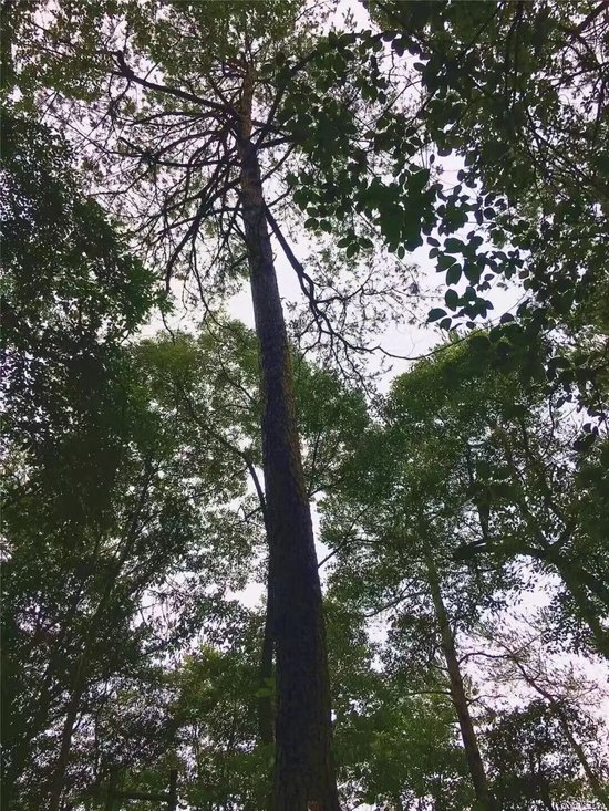 在韶山,毛泽东同志故居对面的古马尾松林苍翠欲滴。其中一棵古松高大挺拔、格外引人注目,这棵参天马尾松位于韶山冲象鼻山,迈入山林间,山中满是高大挺拔的马尾松,根据树上的标记,每棵树龄都在200年左右。而这棵“中华名树”,就在山边的一侧,在风景区的马路边。