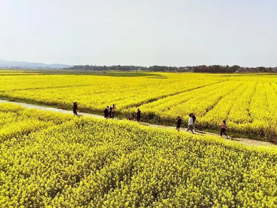 锦石乡的碧泉潭边,两千亩油菜花与千年文脉交融。