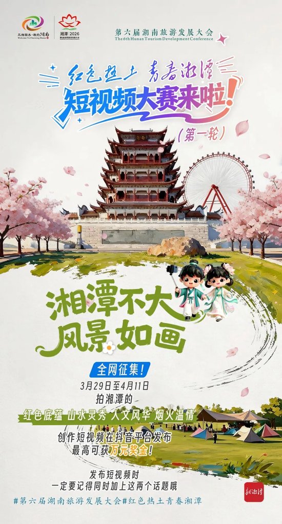 在征集时间内,围绕第一轮主题“湘潭不大 风景如画”,聚焦湘潭红色底蕴、山水灵秀、人文风华和烟火温情等,拍摄制作发布短视频,展现湘潭文旅独特魅力。